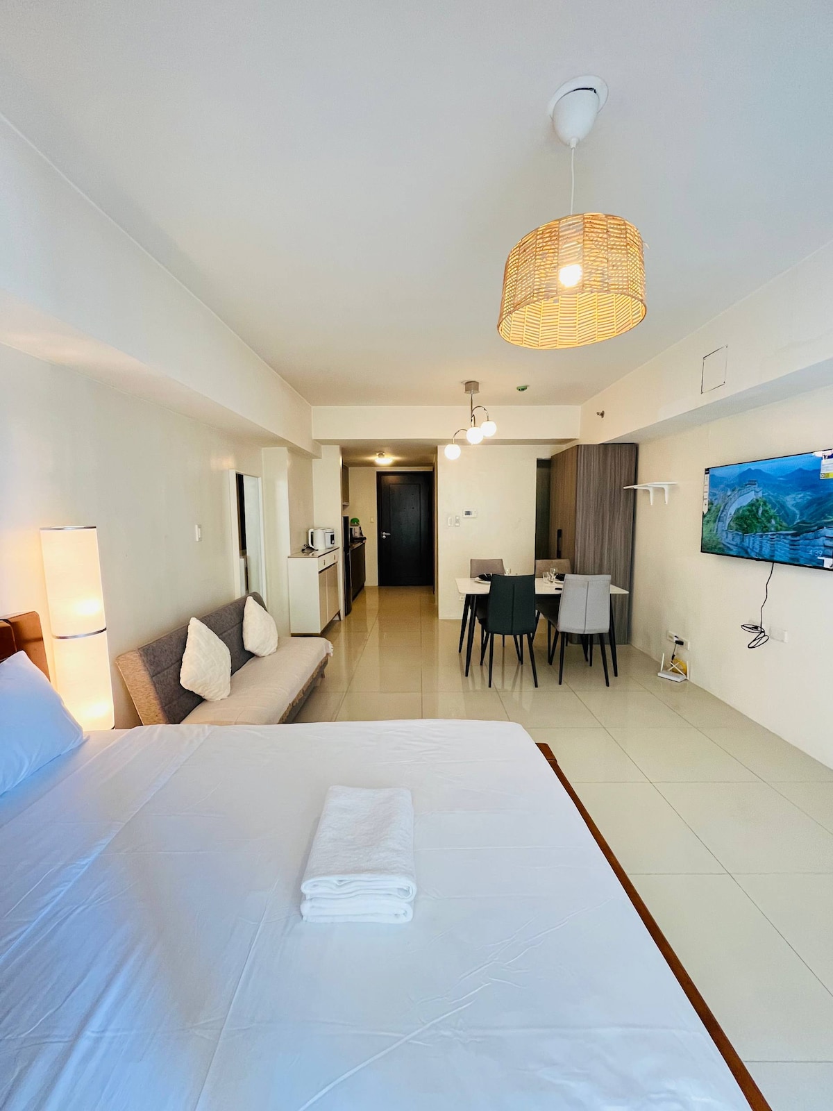 High Floor & Balcony with Stunning Views • Okada (500m) & City of Dreams (700m), facing Manila • 700m to Ayala Mall, next to PITX (100m) for easy transport • 3km to SM MOA, one of Asia’s largest malls • 7–15 min to NAIA Airport, quick & convenient travel 4-Star Comfort · Move-in Ready Luxury 1.8m Bed + Premium Mattress for deep sleep 24/7 Hot Water (Washbasin & Shower) Smart TV with YouTube & Bilibili (English & Chinese) Near T1/T2 · 100+ Units · 4 Lifts · Full Internet TV Access