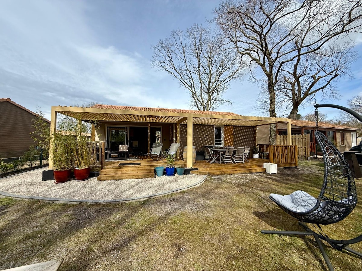 * Idéal famille, parcelle ombragée/clôturée, Wifi gratuit * Chalet climatisé 35m2 + terrasse couverte fermée 10m2 (ouverture possible par beau temps), terrasse bois 22m2 avec bains de soleil/chiliennes * Piscine avec toboggans (mai-septembre) * Parc résidentiel de loisirs 4 étoiles, au cœur de la forêt, nombreuses activités : tennis, Accro-Park enfants, City stade, aires de jeux enfants, restaurant-bar-épicerie... * A 15 minutes dune du Pyla, bassin d'Arcachon, Aqualand, zoo, plages océanes...