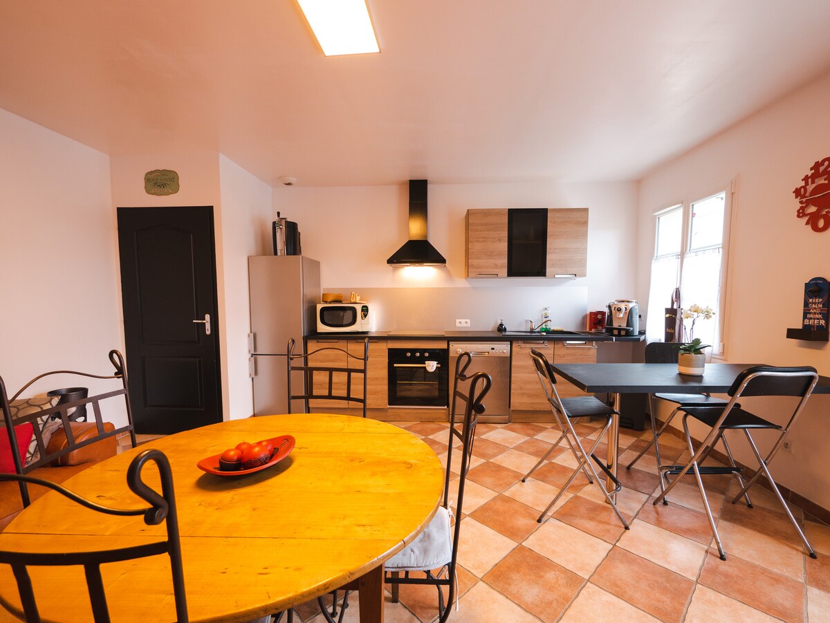 Just 10 minutes from the racetrack! Treat yourself to a stay in our spacious, light-filled loft, perfect for 8 people. Enjoy a large open plan living room, fully equipped kitchen and friendly dining room. The master bedroom with a balneo bathtub invites you to relax after a busy day. Ideal for families or friends. We have set up an outdoor table in a green area just for you! Self check-in