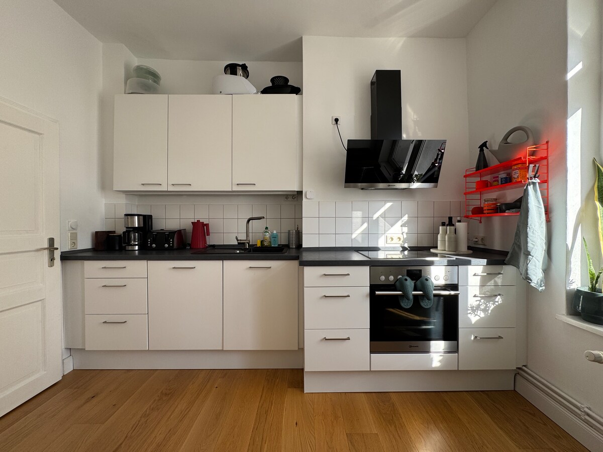 This spacious, loft-style apartment is centrally located between the popular Schanze and Altona neighborhoods, right in the heart of the action yet quietly nestled in a green courtyard. The bedroom offers a relaxing retreat, while the open-concept living, work, and dining area—complete with its own tea and coffee station—invites you to linger. The spacious terrace with a seating area is a wonderful place to relax. The fully equipped kitchen is perfect for both cooking and cozy get-togethers.
