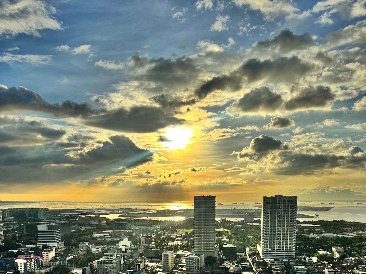 Enjoy the breathtaking view of the Manila Bay sunset and the beautiful night view of the Paranaque skyline. Located in the heart of Manila minutes away from theme parks, cultural sites, embassies, and shopping centers. The Radiance Manila Bay is less than a year old. It is a very secure building that has a 50m pool, play area for the kids' fitness center & more. Unit is equipped with a 65" smart tv, queen size bed, strong WIFI, washing machine full cutlery, and cooking supplies.