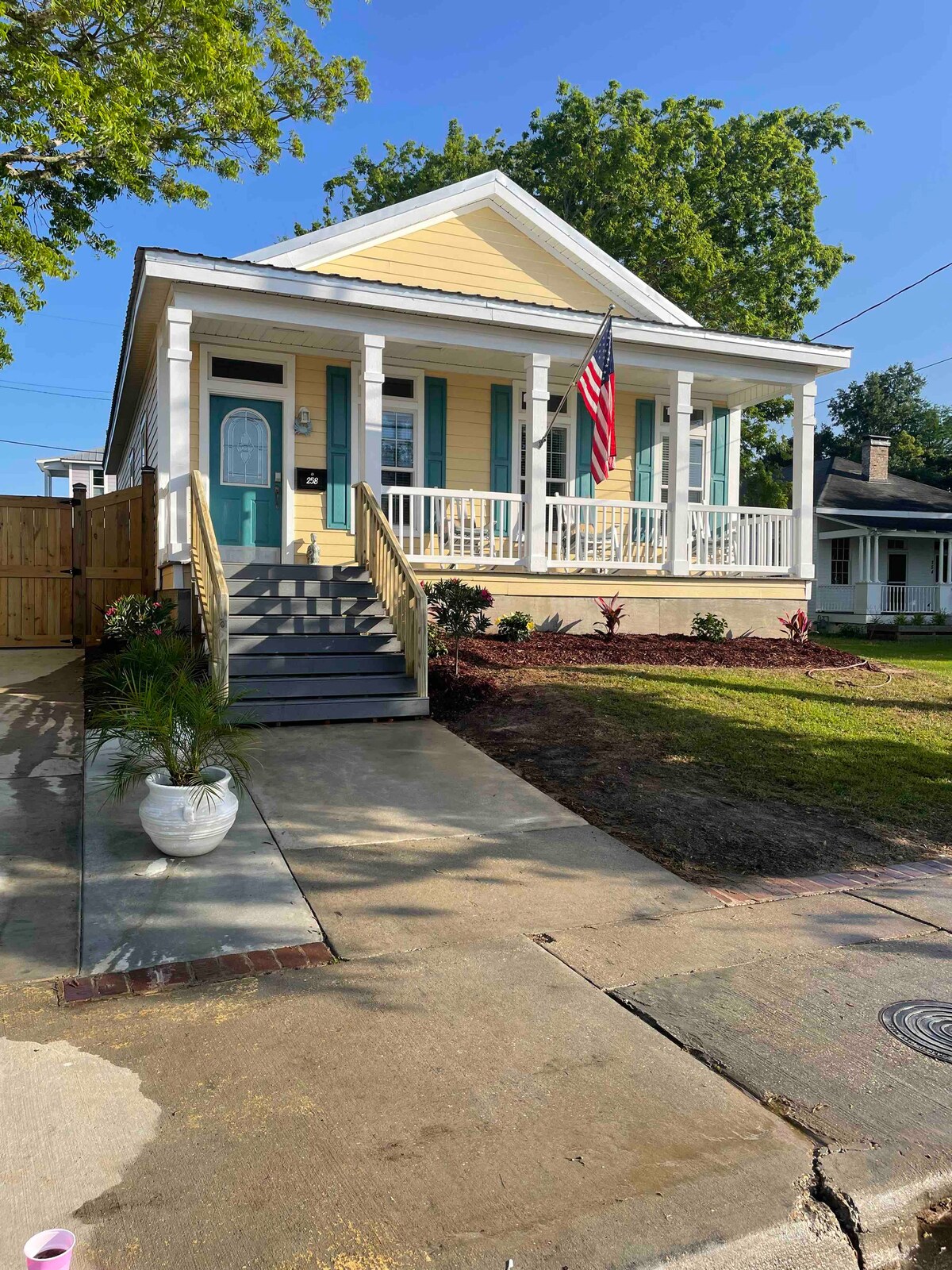 Mrs. Alice's by the beach is located one block off the beautiful beaches of The Mississippi Gulf Coast. Located at 258 East 2nd Street, Mrs. Alice's has a beautiful coastal theme open floor plan with 3 bedrooms & two bath (one handicap accessible). With two Queen bedrooms and a full bedroom this cozy house comfortably sleeps 6. The front porch leaves an inviting area to have you morning coffee or evening drinks and enjoy the coastal hospitality of locals passing through.