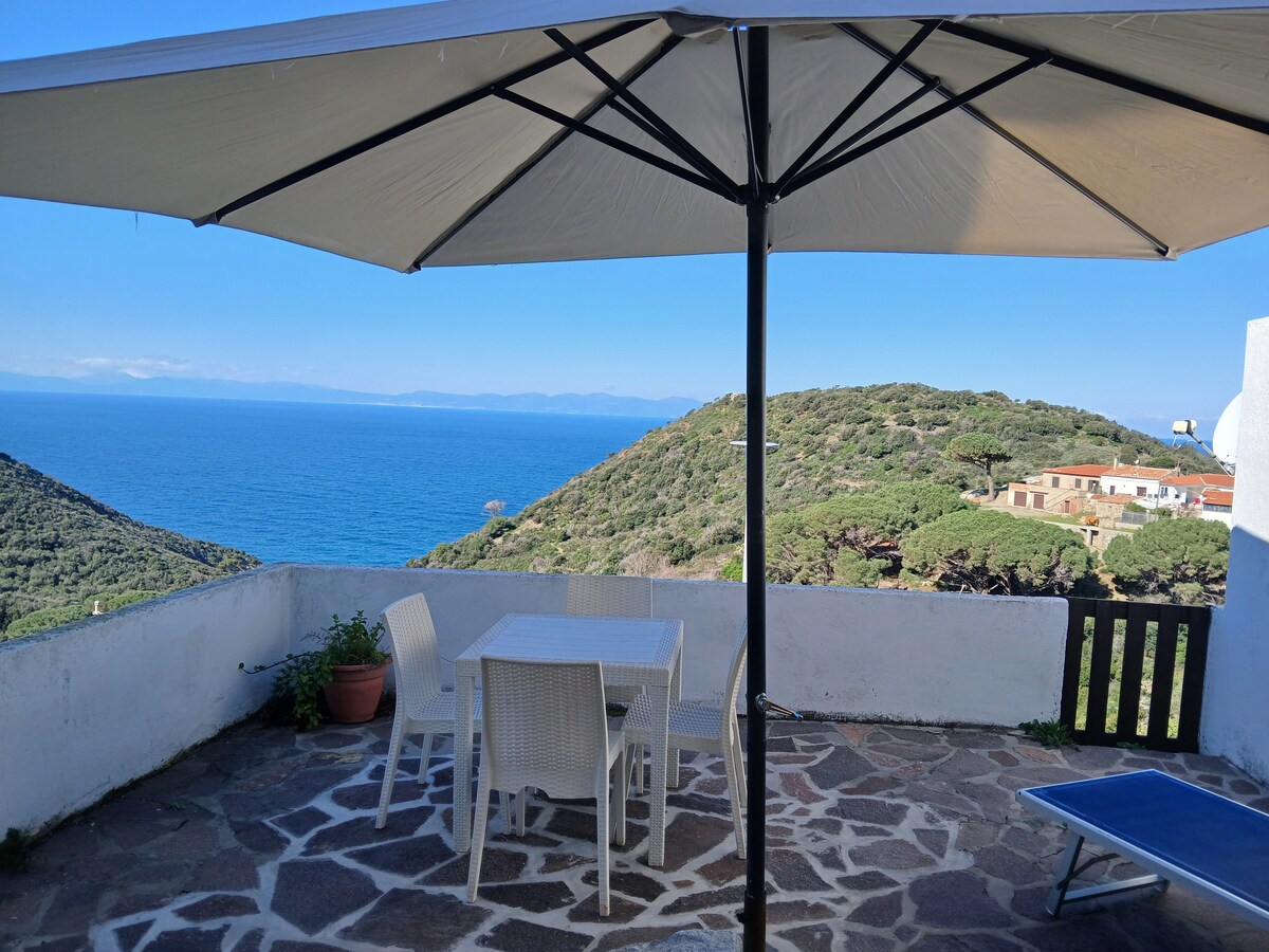 Two-room apartment consisting of a double bedroom and a double sofa bed in the living room. Incredible view of Corsica and Capraia, located in the middle of nature, recently renovated. Ideal for hiking enthusiasts with trails just a few steps from the house. The sea is 1.6 km away and can be easily reached by your own vehicle or shuttle service with a stop in front of the private parking lot reserved for the apartment. We do not provide linens.