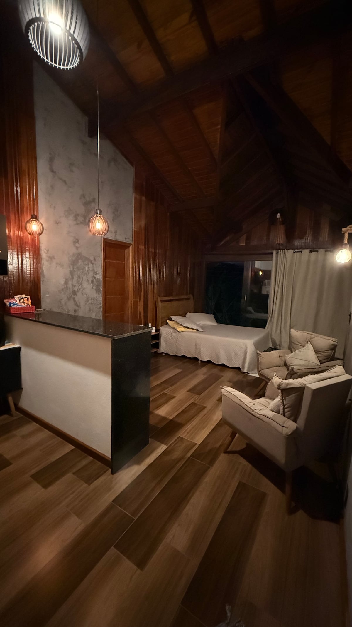 Discover the perfect balance between the rustic and the modern in our Chalé Requinte da Serra. Set in the heart of the city, this retreat offers a unique hosting experience, combining coziness, style and a spectacular view. Every detail was designed to provide comfort and a memorable stay. Enjoy serene mornings with a beautiful view and relax in a beautiful and welcoming atmosphere. Nossa Chalé is the ideal destination for those seeking comfort in a modern and | nstagrammableenvironment.