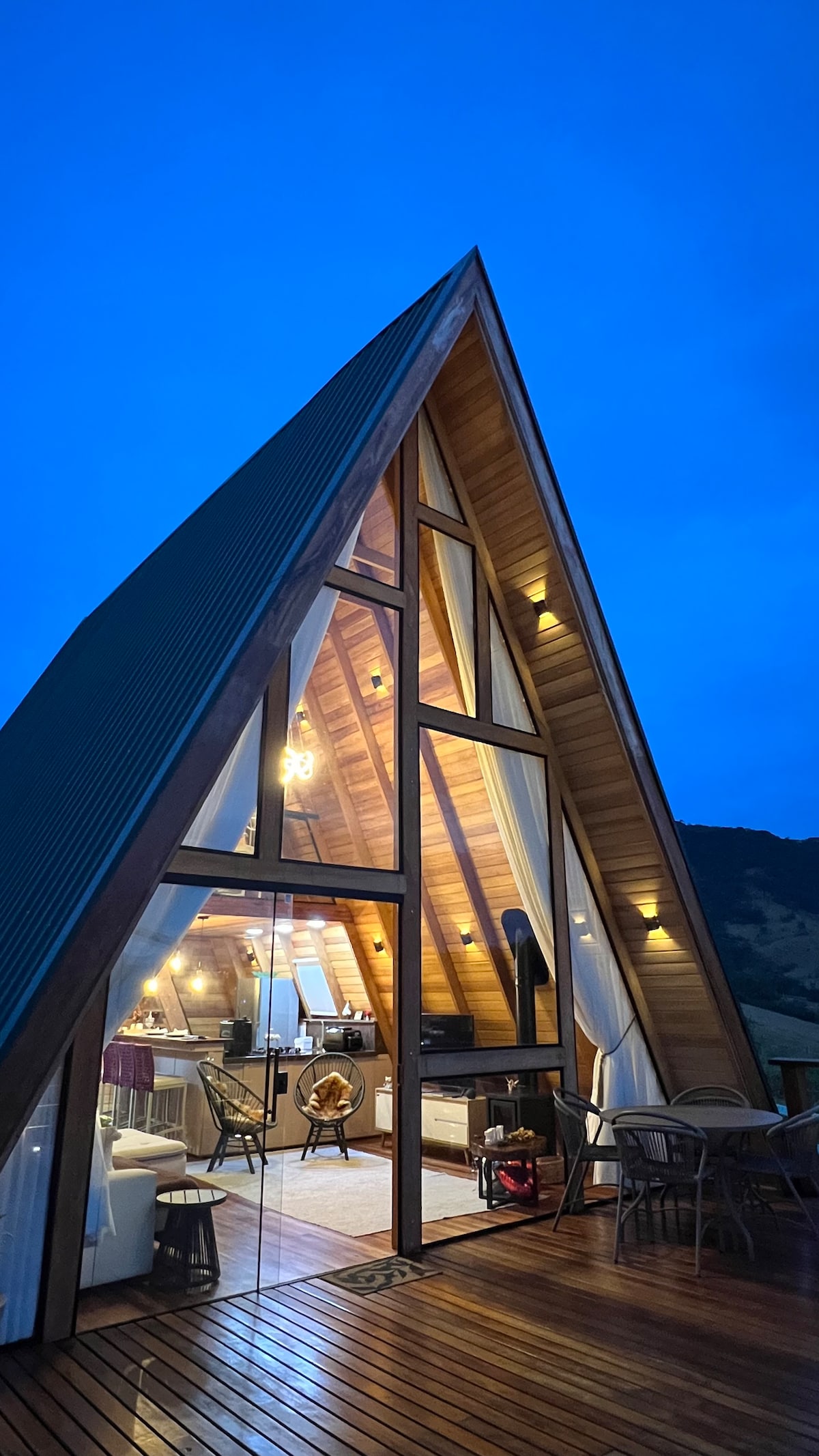 Come and experience this unique experience! An isolated cabin in nature and with the most impressive view of the famous Pedra do Baú. All this from inside our charming A-Frame chalet located in Gonçalves, south of Minas Gerais. A cabin that blends, to the right extent, with bold architecture with the charm and life of the countryside without losing the modernity and sophistication of the city. It is ideal for passionate couples to have an unique sensory experience.