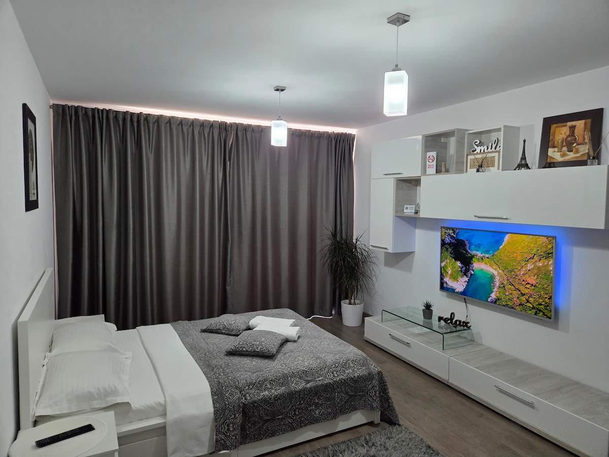 Înconjoară-te cu stil în acestJacuzzi Urban Heaven Studio, o oază urbană unde confortul și rafinamentul se întâlnesc pentru a vă oferi o experiență de neuitat. Cu facilități premium, inclusiv un jacuzzi modern, vă invităm să vă destindeți și să vă bucurați de o escapadă urbană într-un spațiu gândit cu atenție pentru a satisface cele mai exigente gusturi.