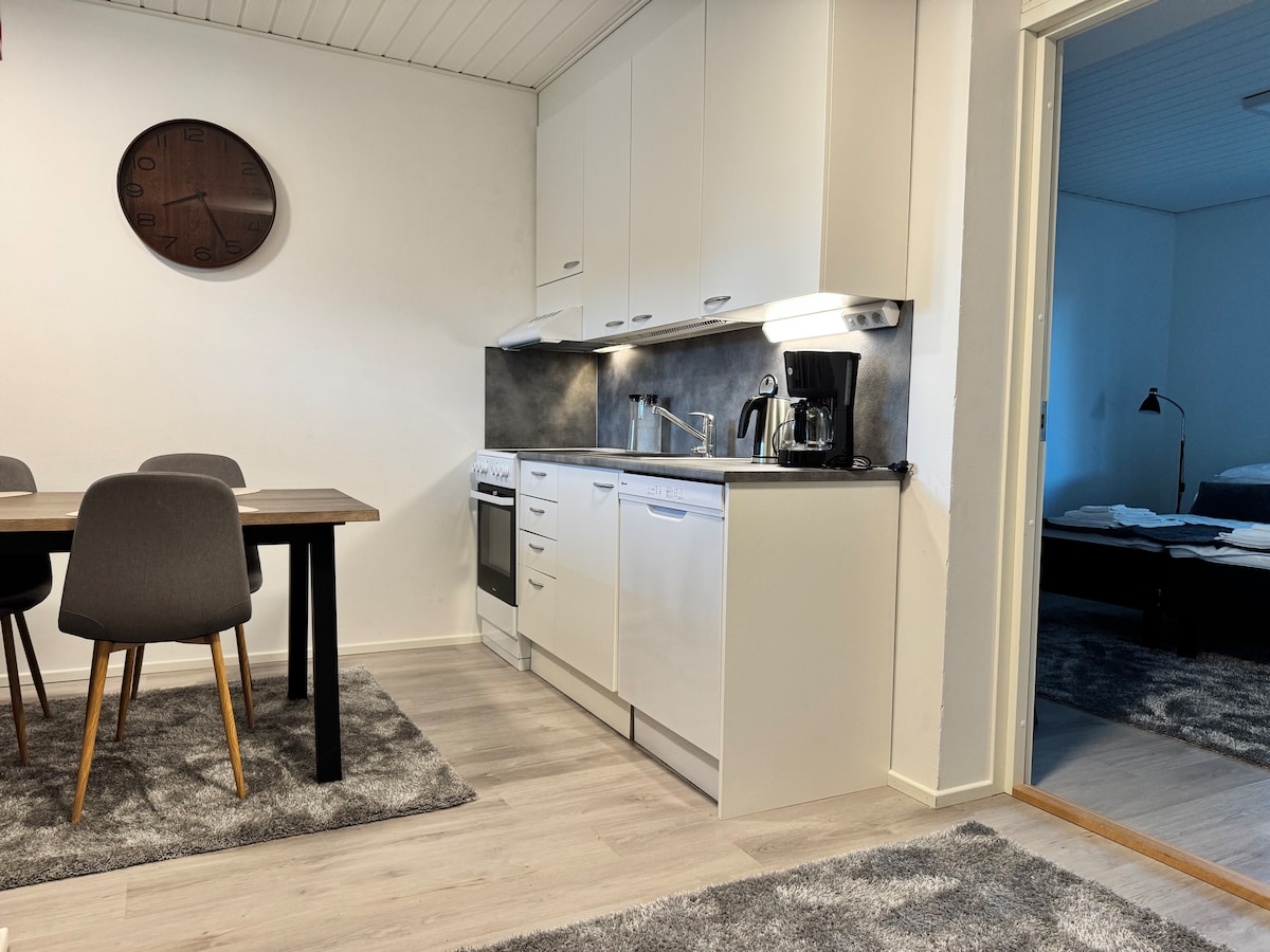 Completely renovated apartment for 1 - 3 (5) persons in the center of Sodankylä. With its own entrance, hallway, bedroom, livingroom, kitchen and bathroom. The bedroom has two single beds and the living room one single bed. Possibility also of two extra beds. Kitchen well equipped, fridge-freezer, dishwasher, oven, coffee maker, kettle and toaster.