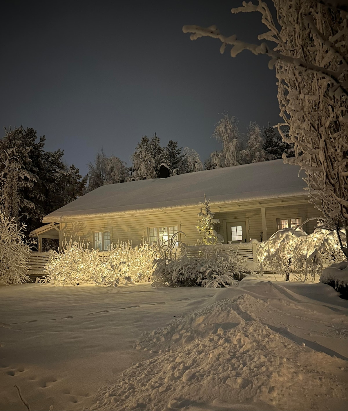 Kelorital cottage in Pyhä, good and peaceful location at the end of the road. A small forest, trails, and slope can be seen from the window. Hiking trails and services are nearby. The cottage has original charm, with new beautiful decor. Great kitchen. You can sleep downstairs or in the loft. The ladder to the loft is steep. The cottage has wifi, a 43’ TV, and a bluetooth connection on the radio. The fireplace is not in use. The cottage has a good sauna, washing machine and drying cabinet. Linens and final cleaning are included.
