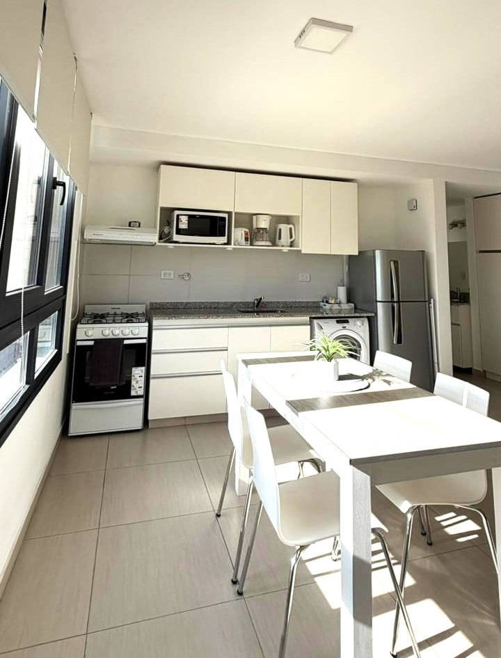 Located in the downtown area of Neuquen capital, easy access to the routes and covered parking in the same brand new DOMO Tower building. Designed with premium equipment for good rest and/or work. Good lighting, full kitchen with washing machine. It has a quality queen size bed, 50" Samsung TV with WIFI service, air conditioning and boiler. The kitchen has a microwave, electric kettle, toaster, coffee maker and full dishes.