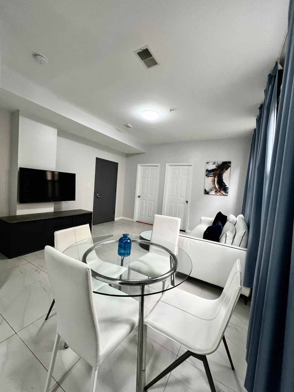Introducing our brand new, impeccably clean, and delightfully modern private 1BR/1BA suite! Designed with both style and comfort in mind, this inviting space promises an unforgettable stay. Your exclusive retreat features a fully equipped kitchen, a luxurious bathroom, and spacious 55'' & 50" smart TVs for all your streaming needs. Enjoy complimentary high-speed WiFi, climate control with A/C and heating, and access to our guest laundry facilities—all designed to enhance your experience.