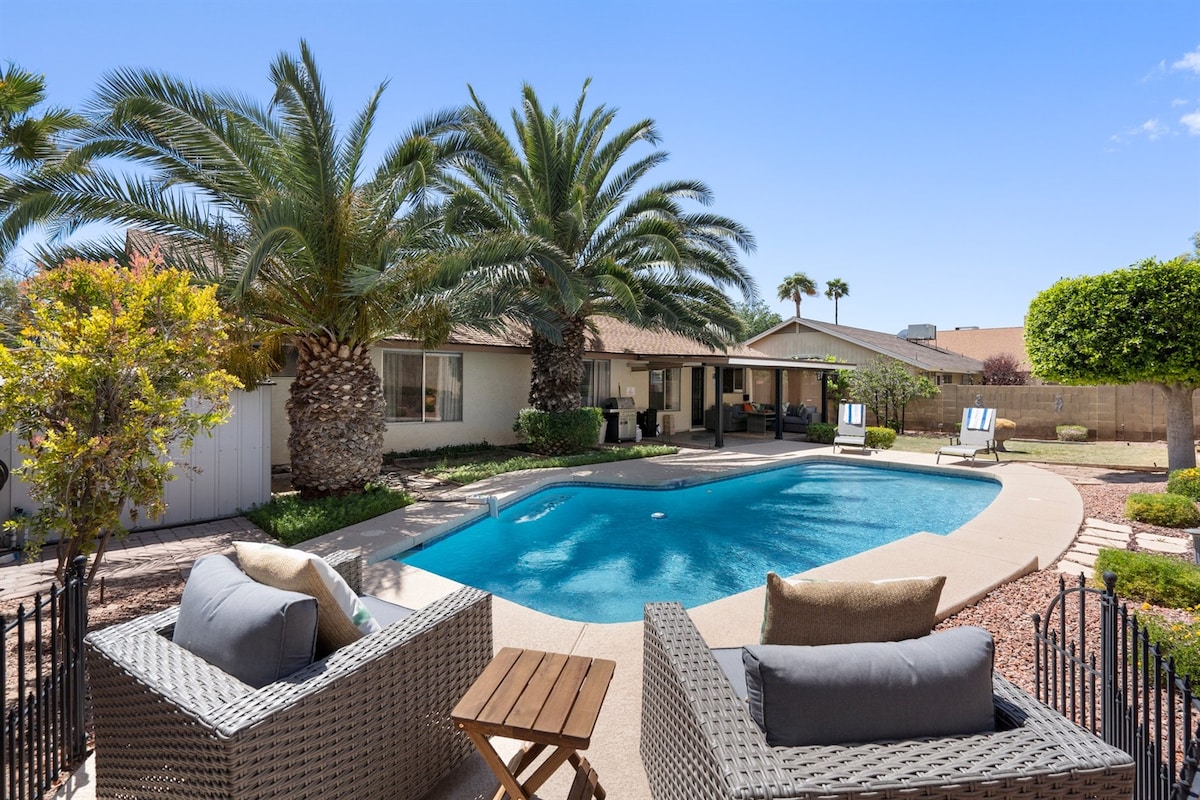 Wonderful, Comfortable, Spacious, over 2300 sq ft. Fully Furnished SFH. Lots of Room to Roam with Living Room and Family Room with Gas Fireplace! Enjoy the Arizona Sun or Beautiful Starry Nights in this Private Resort Style Backyard with Covered Patio, Play Pool, & Gas Fire Table! Also Includes Fenced Yard for your Pets. Pets are Welcome! 1 Car Garage Parking. Great Neighborhood! Close to Great Restaurants & Shopping & Freeway Access. AZ TPT#21500053