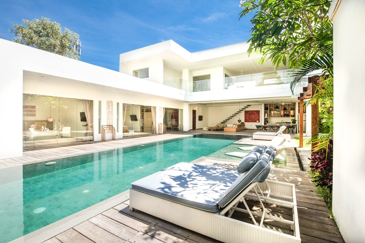★ "A true Bali experience. Great location, good host, clean and comfortable." ☞ Private walkway to beach (1 min) ☞ Beach w/ best surf breaks ☞ Prime location (cafes, dining, boutiques etc.) ☞ Designer villa w/ island kitchen + bar ☞ Swimming pool + indoor/outdoor living ☞ All bedrooms w/ AC + ensuites ☞ Complimentary maid service ☞ Pet friendly* 1 min → Pererenan Beach (cafes, swimming, surfing) 1 min → Wrong GYM (classes, sauna, ice bath)