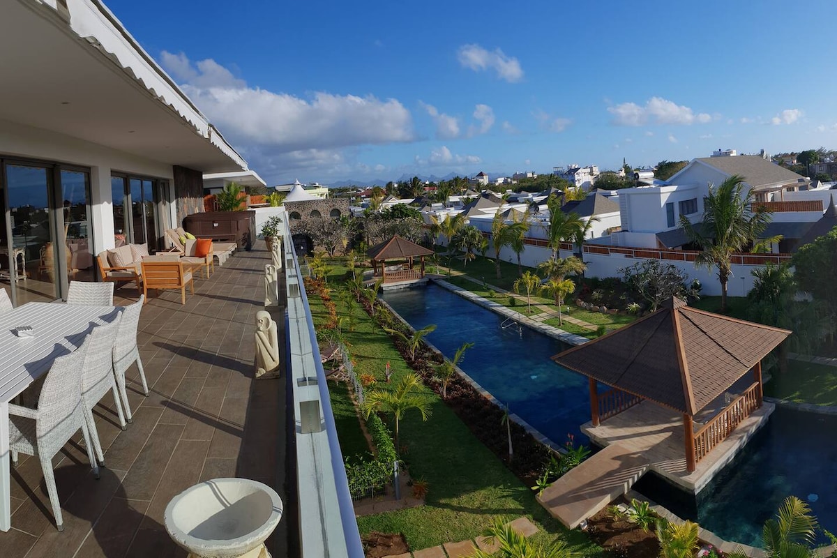 Penthouse exceptionnel de 180m² - 3 chambres en suite, décoré dans un style mauricien unique - Plages de MontChoisy (13 min) et Trou aux Biches (13 min) à pied - 6 minutes de Grand Baie - Terrasse privée de 80m² avec Jacuzzi - Cuisine entièrement équipée - 3 TV - Wi-Fi Très Haut Débit - Barbecue sur la terrasse - Plus grande Piscine de l'Océan Indien (Lagon de 2500m²) - Sécurité 24h/24 - 2 places de parking privées - Bar / Restaurant dans la résidence - Conciergerie - Salle Fitness (supplément)