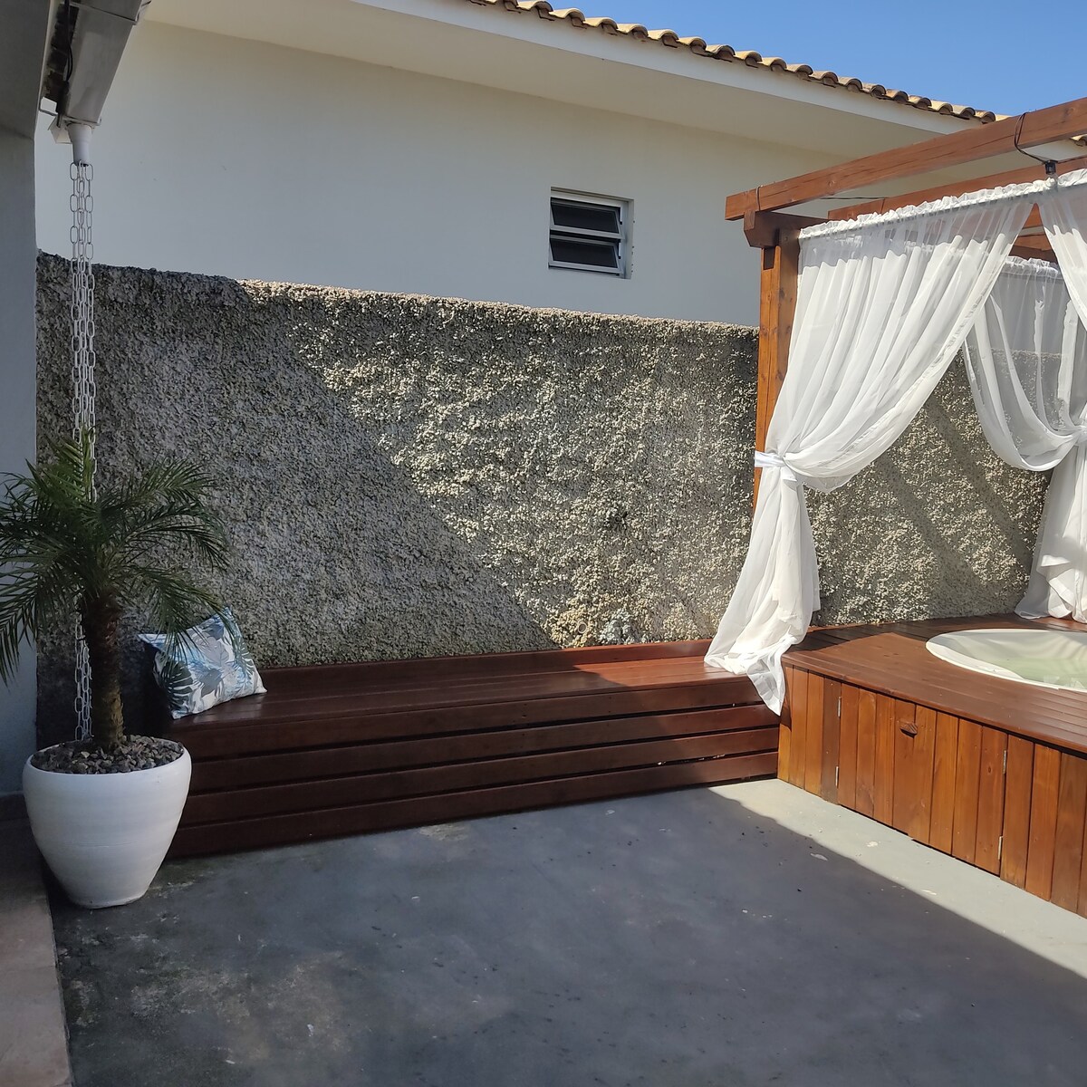 Relaxe nesta acomodação tranquila. Entre cidades de praia e aguas termais, cachoeiras, castelo, shopping... NENHUMA ÁREA É COMPARTILHADA COM OUTRAS PESSOAS. Melhor custo benefício: Banheira de Hidromassagem. Wi-fi de 450 MG Garagem fechada, portão eletrônico. Ar condicionado nos dois quartos Cozinha sob medida e Banheiro com Box de vidro. Temos colchão de solteiro para a quinta e sexta pessoa. ( para a quinta e sexta pessoa é nescessário trazer travesseiro, jogo de lençol tolhas, e cobertores
