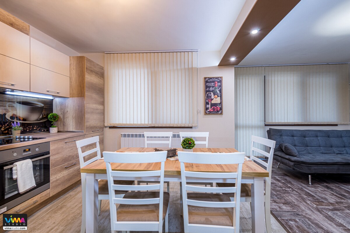 Добре дошли във Вашето чисто ново, луксозно място в Сърцето на Стара Загора. Разположен на чудесна локация, в централната част на града, на тиха улица в чисто нова бутикова сграда. Обзаведен с много заряд за положителни емоции, в еклектичен стил от минимализъм и лукс, вярваме, че ще покрие критериите Ви за търсен престой в града на Липите. Апартамента разполага със собствено паркомясто, точно под терасата на апартамента, което е безплатно за гостите. NETFLIX, HBO and Cinemax, Diema EXtra