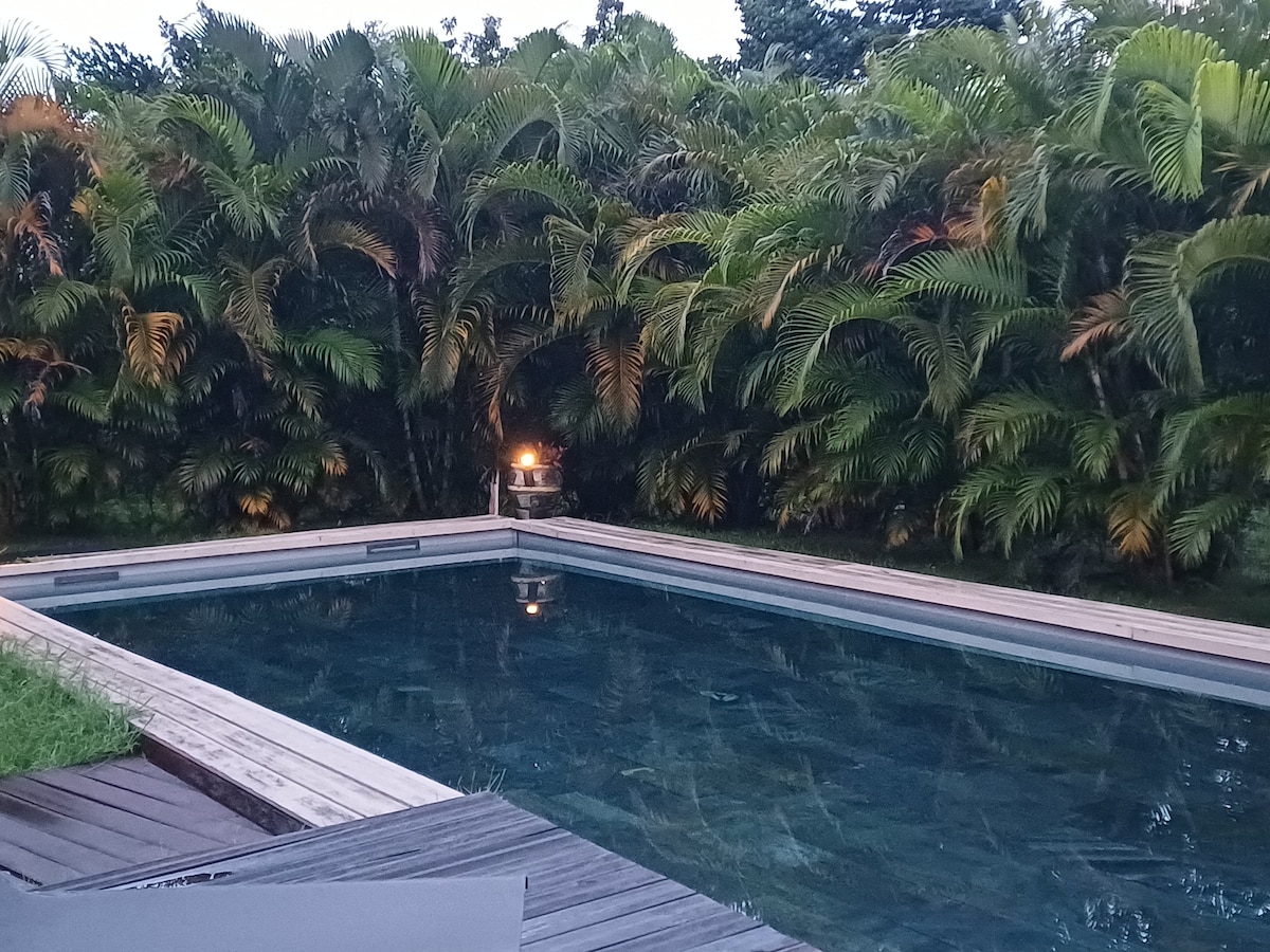 T2 HARMONY with access to the family pool (private for tenants) at the bottom of the villa with a separate entrance, parking, water tank and solar equipment in case of power failure. Located in a neighborhood with a green landscape and a quiet atmosphere. 5 min to the kassaverie and rivers, the Canyon de la Moustique, of exceptional beauty ideal for hiking is nearby. Business park 10 minutes away (small shopping mall, restaurants, pharmacy, doctors).