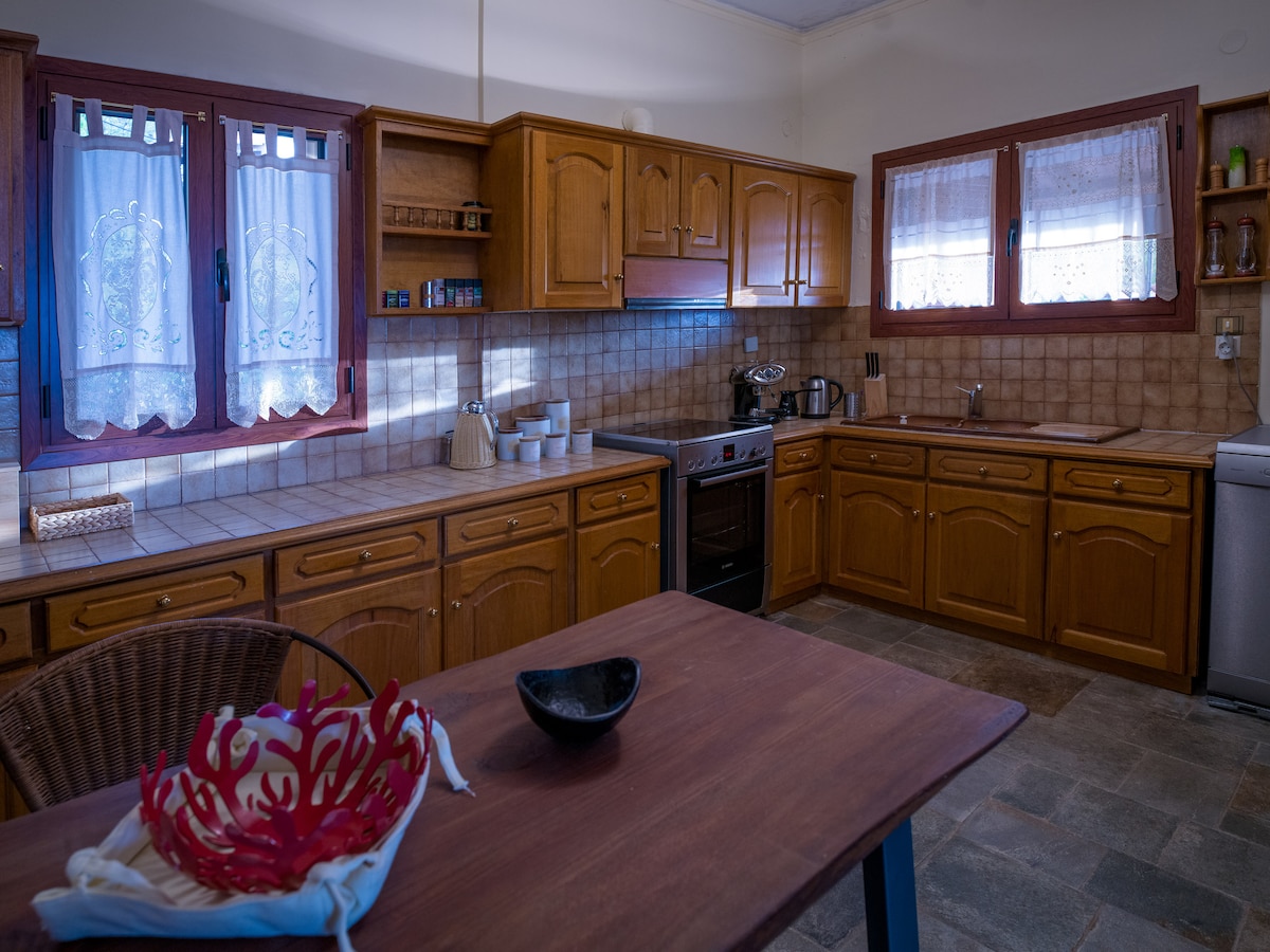 Welcome to our enchanting traditional house in the heart of captivating Galaxidi! Our home offers a breathtaking rooftop view, 3 minutes walk to the bay and 30 minutes drive to Delphi. It's the perfect spot to relax. At the entrance to the house, there is a porch where a large dining table awaits. Inside, you'll find the living room and equipped kitchen. The house spans two floors and features three comfortable bedrooms. It also has three indoor showers plus an additional outdoor shower.
