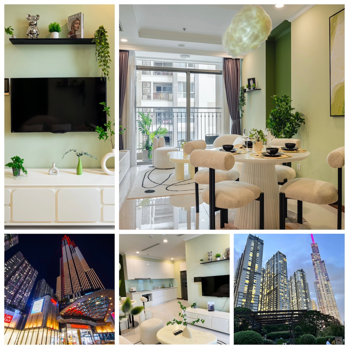 Experience the full spectrum of experiences at this centrally located venue Landmark 81 is the tallest building in Vietnam, high-floor apartments, beautiful view, Nordic style, luxurious, with floating lake, cinema, shopping center, park, 5-star class. . The campus has an area of 20,000 square meters and is the most luxurious urban area in Saigon, Vietnam. The apartment is on the 17th floor of Landmark 6 building, 2 bedrooms, 2 bathrooms. Both bedroom windows and balcony have panoramic views