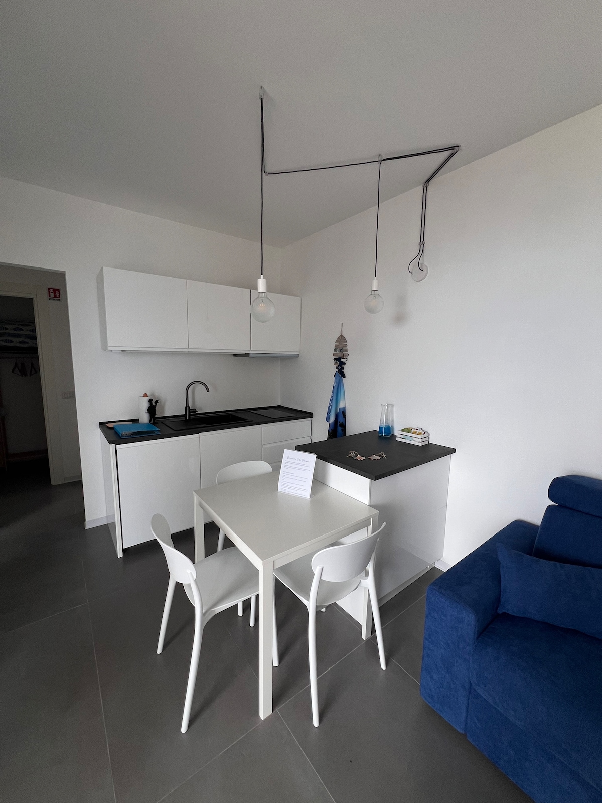 Modern and bright three-room apartment in Pietra Ligure, a short walk from the sea and services. Consisting of a fully equipped kitchen with appliances, a living room with TV and dining area, a double bedroom and one with a bunk bed. The apartment has air conditioning, a bathroom with a shower, and a washing machine. Perfect for couples, families or friends who want to enjoy a beach vacation, with all the comforts. Elegant and functional furnishings for a comfortable and relaxing stay.