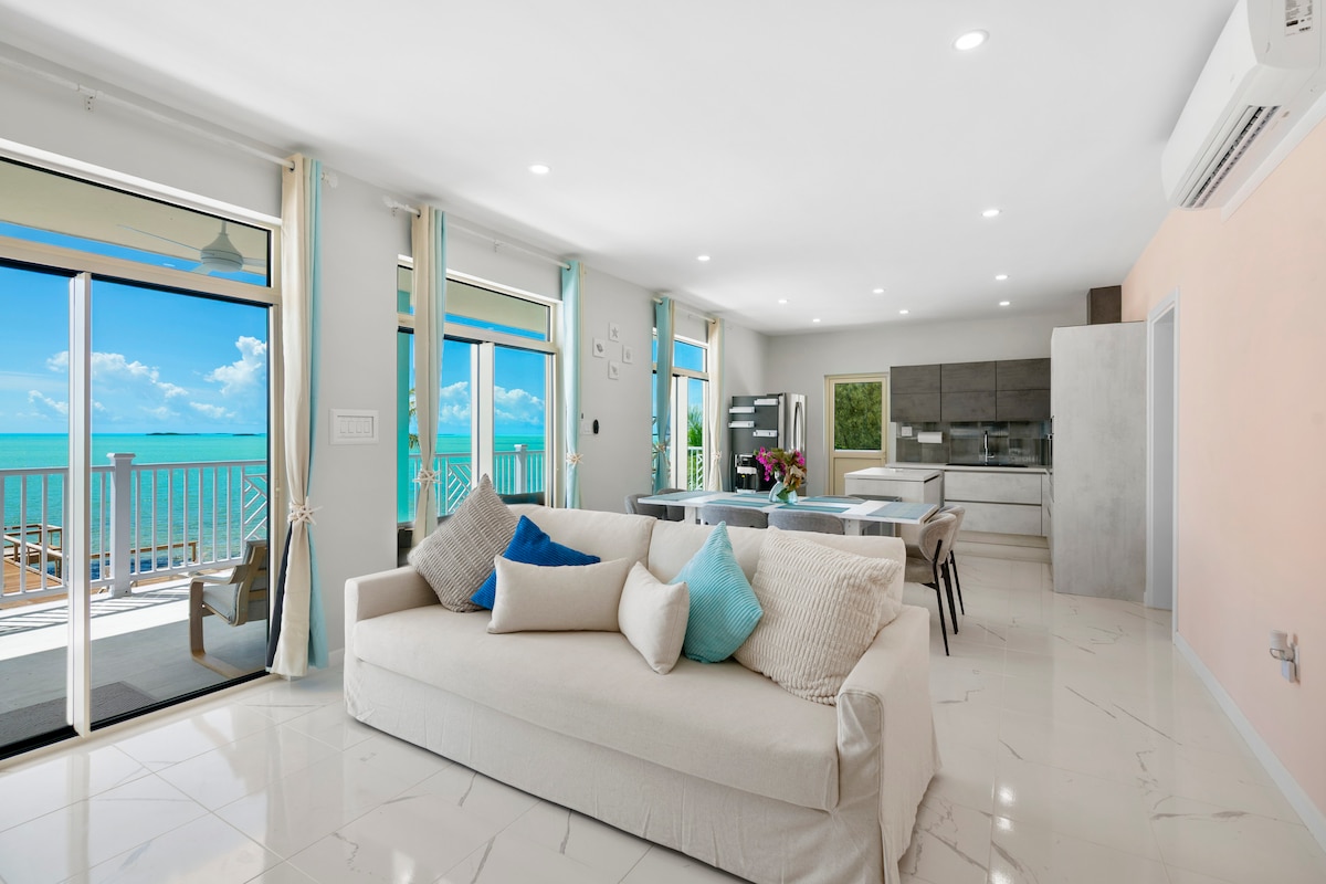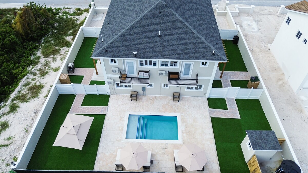 Brand New Heated Pool is ready! Enjoy this 2-story home that boasts a spectacular views of the Bahamian, turquoise ocean. Located 20 minutes from the airport, 1 minute from Georgetown with various amenities, this newly renovated 4 bedroom can sleep up to 8 guests. This spacious home combines the tranquility of nature with the convenience of modern living. Short walk to the waterfront, and easy access to multiple beaches! Large second-story screened-in balcony with gas grill and dining table.
