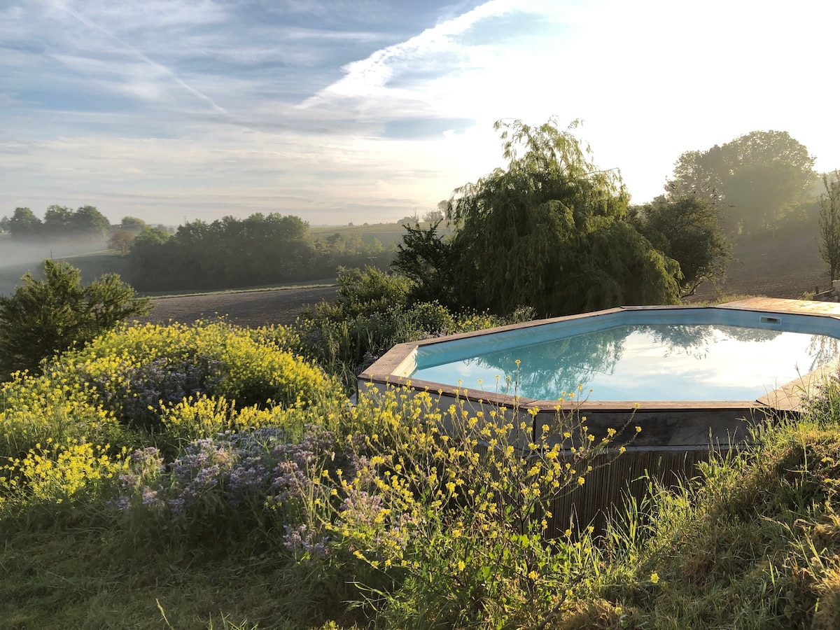 Welcome to the little Bordeaux Tuscany and its hillsides dressed in centuries-old vines. Calm and relaxation await, accompanied by beautiful views of the countryside and its sunsets. The accommodation has all the comforts as well as air conditioning! Only 6 minutes from Libourne, 25 minutes from Saint-Emilion, 35 minutes from Bordeaux, and 1 hour from the ocean beaches, it is ideally located to let you discover our wonderful wine region.