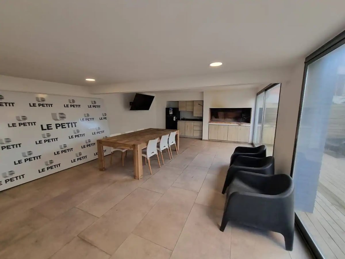 Depto moderno y muy luminoso con patio y parrilla en pleno centro de Pinamar Ideal para estudiantes y escapadas todo el año. Ubicación estratégica, segura, comercios cercanos y con movimiento permanente. 📍A minutos de todo: • 5’ del mar • 5’ de UADE • 5’ de la terminal 🌿 Patio y parrilla propios 🚗 Cochera cubierta (sólo autos, no camionetas) ♨️ Losa radiante (ideal invierno) 🧺 Lavarropas + ropa blanca 🏊 Amenities: pileta, sauna y gym 💸 Descuentos por +6 días (ideal UADE)
