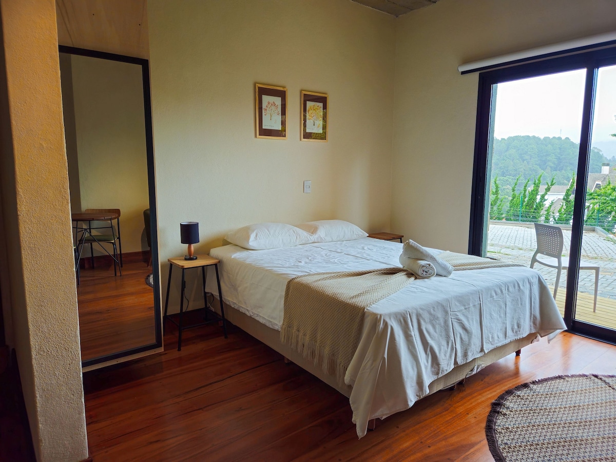 A special unit of @residencialrecantogenebra, this studio/apartment is located on Rua Genebra, a beautiful cherry tree street. The room has Smart tv 32', double bed (bedding included). The kitchen is complete with a stove, oven, refrigerator, microwave and items such as pots, dishes, glasses and cutlery. Full bathroom with hot shower. Wi-fi free; Free parking at the property; We are a 15-minute drive from the tourist center (6km).