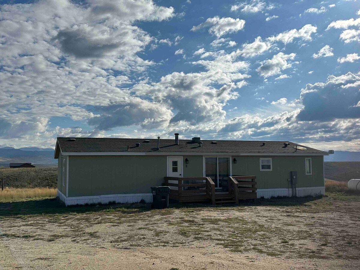 Self check in and private one bedroom guest house with spacious open living room and large bathroom. Mountain farmhouse decor with full kitchen, laundry and living area. The unit comes with high speed internet and laptop friendly workspace. Leather reclining sofa for streaming movies. Cozy and comfortable. During your stay you can enjoy the indoor fireplace, bathtub, incredible sunsets and stargazing. Pet friendly. Parking accommodates trailers and RVs. 360 view of Wind River Range.