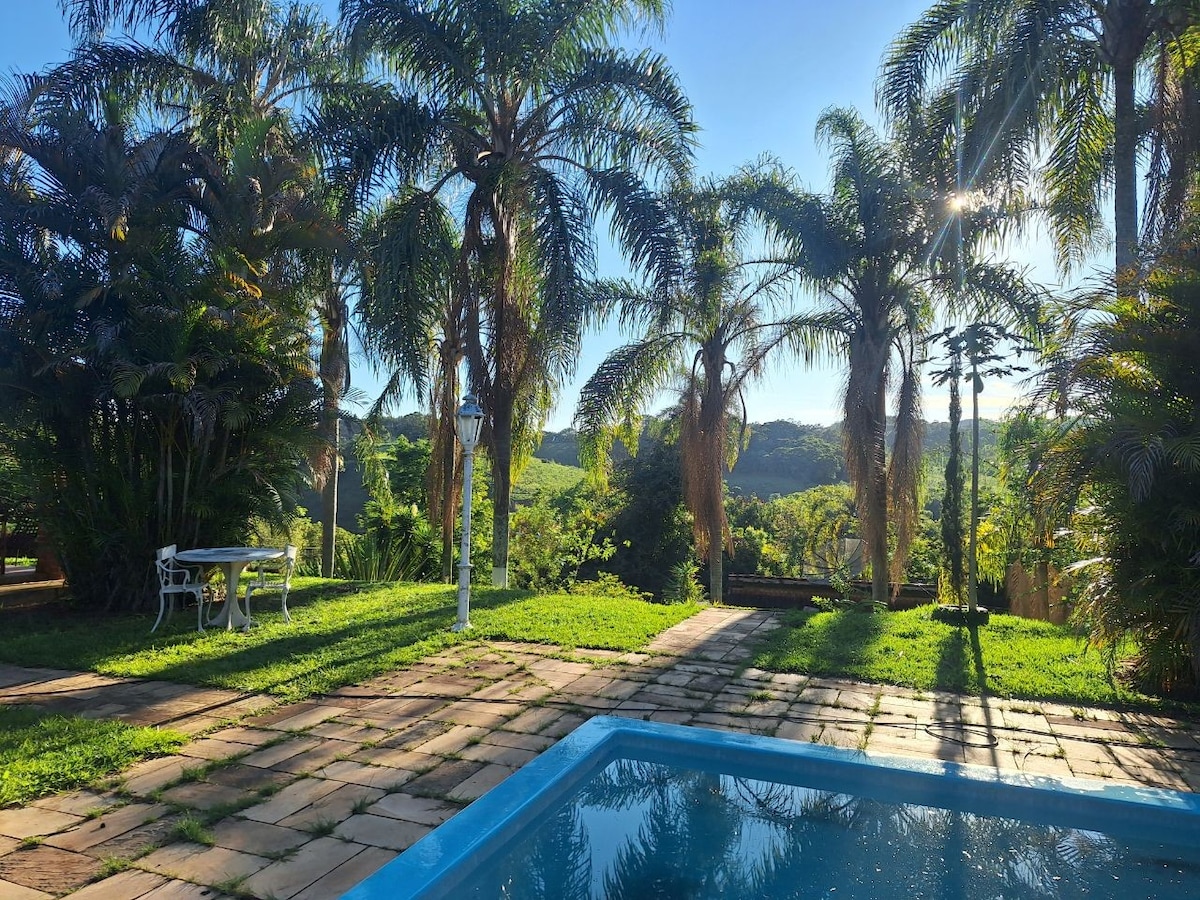 The place has beautiful gardens and trees of various species, with lots of nature around. The main house has TV and dining rooms, a large kitchen with industrial stove, wood stove (in the outside area next to the kitchen) and 6 suites that perfectly accommodate all guests. The outdoor leisure area has a large deck and sunset view, swimming pool with wet deck, jacuzzi, sauna, gourmet space with barbecue, stove and pizza oven. Perfect place to hang out with family and friends!