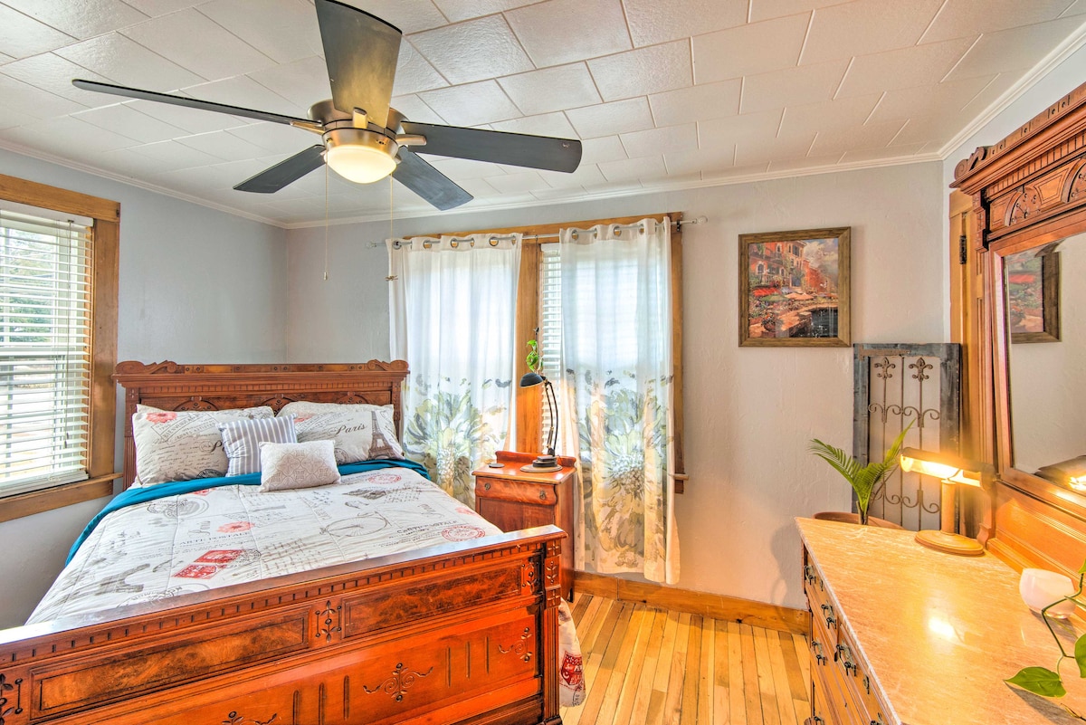 Spacious Springfield home ideal for work crews or groups, sleeping up to 8 with a king bedroom, two full baths, and a basement with twin-over-full bunks. Features include a large kitchen with ample storage, in-unit washer/dryer, office desk and chair, TVs throughout, free parking, complimentary EV charging, and a big backyard with grill and patio seating—perfect to relax or gather after a long day. Conveniently located minutes from downtown, restaurants, and major attractions.
