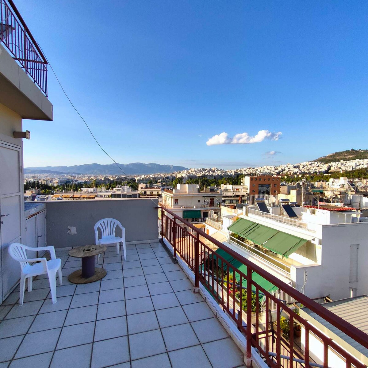 Bright and Relaxing Studio, on 6th floor, fully renovated in 2022 with a big private terrace area, in a safe and beautiful neighboorhood, 5 minutes away from Nea Smyrni Square on foot.There you can find many coffeteries, bars, restaurants and suvlaki.There is tram (Megalou Alexandrou) and a bus station (on Syggrou) about a 5 minute walk which can take you to the beach or the centre of Athens (around 15 minutes).You can also visit the Nea Smyrni grove, less than 10 minutes away on foot.