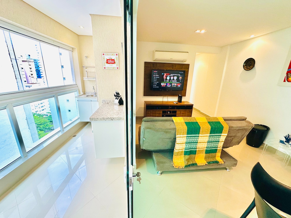 Pitangueiras Beach Apartment - Apartment has Wi-Fi, smart TV, air conditioning, kitchen with all utensils. - Daily housekeeping. - Beach service - 24-hour doorman - Valet parking - Pool and Sauna (not including towels, toiletries, bed linen) 1 BLOCK FROM THE SEA Close to all types of shops Best location in Pitangueiras guaranteed has 1 double bed + 1 double sofa bed We provide full support from the beginning to the end of your stay