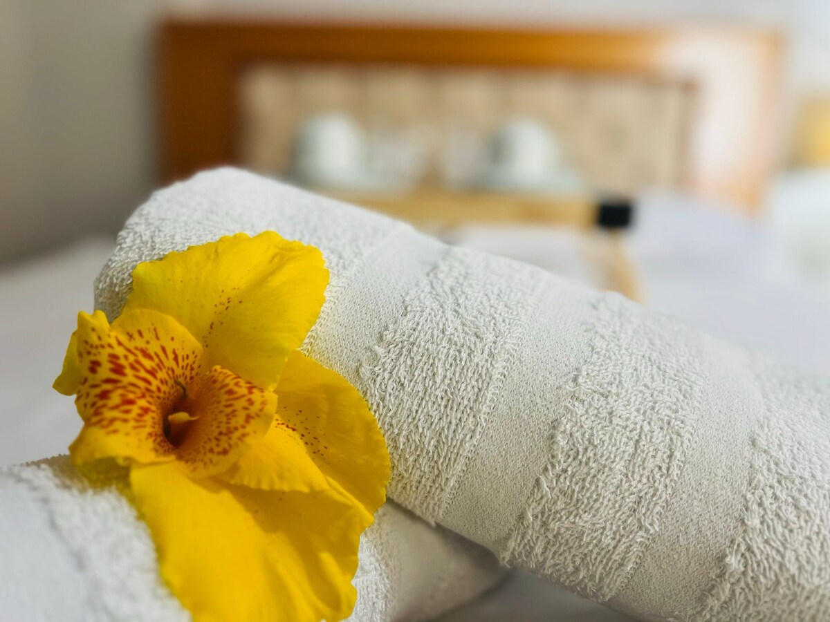 The bedroom is equipped with a comfortable double bed and a single bed, offering enough space to relax after a day full of adventures. In addition, you will find a fan to ensure peaceful nights of sleep. The room includes clean bed linens and bath towels for your convenience.