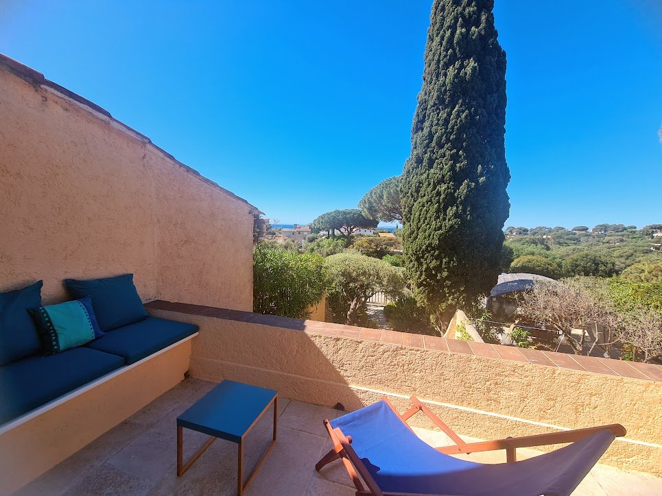 Une vue mer exceptionnelle depuis chaque pièce et de la terrasse / jardin, accès à pied à la belle plage de Gigaro, idéalement située à quelques minutes de Ramatuelle et de la plage de Pampelonne, à un quart d’heure de Saint Tropez en évitant tous les bouchons, cette maison mitoyenne de 70m2 est dotee de 2 chambres climatisées , 2 salles de bain, d'un grand salon totalement ouvert sur la terrasse de plain-pied. Au coeur d'une superbe résidence arborée avec piscine & tennis. Refaite en 2019.