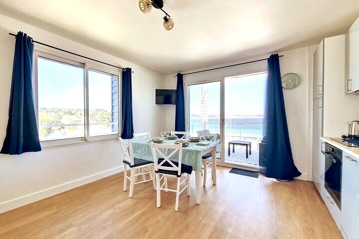 Grand studio très lumineux de 30 m2 situé au 1er étage en plein centre du Conquet. Entièrement rénové à neuf, literie neuve, équipements neufs , tout confort. Tout proche des commerces (magasins de souvenirs, boulangerie, charcutier traiteur, pharmacie...) , à 5 minutes à pied des plages , de l'embarcadère pour le départ des îles Ouessant, Molène et des sentiers côtiers. Vous pourrez aller chercher votre poisson frais à l'arrivée des bateaux
