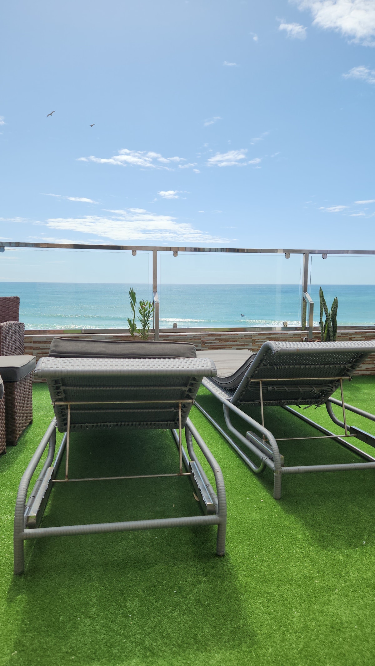 Wake up to the sound of waves, coffee in hand. Step onto your private terrace, breathe in the sea air and let the ocean stretch endlessly before you ✨ HIGHLIGHTS: ★ Direct beachfront with private beach access ★ Panoramic ocean view from a spacious terrace ★ Walk to surf spots, restaurants & local favorites ★ Spacious 2BR ideal for families or groups ★ 100 Mbps optic fiber WiFi & free street parking