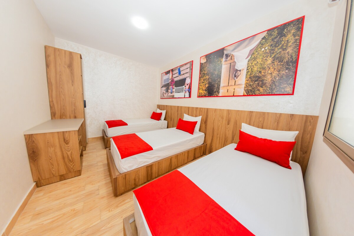 Découvrez Imsouane blue wave, appartement de 50 m² pour 3 personnes, construit en 2025 et situé au 2ᵉ étage d’une résidence moderne de 3 appartements, à seulement 5 min de la mer. Chambre avec balcon, salon lumineux et confortable avec canapé d’angle, cuisine équipée, WiFi et climatisation. Son décor berbère authentique crée une atmosphère chaleureuse et dépaysante. Profitez de la terrasse partagée avec buanderie au dernier étage et laissez-vous séduire par la magie d’Imessouane.