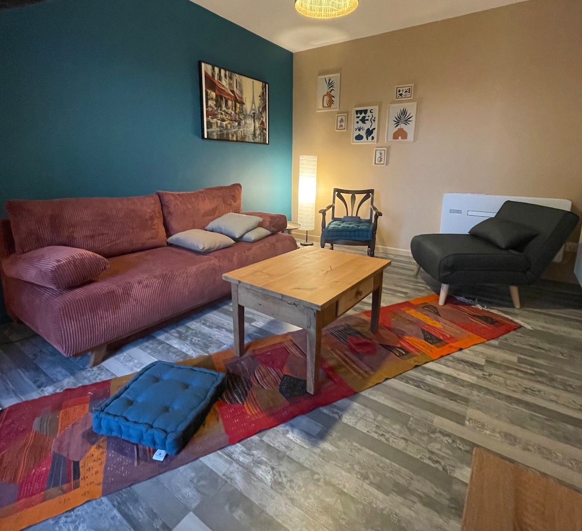 Modern interior in an old building. Beautiful frame, recent renovation. Beautiful living space, quiet while being in the city center. Easy parking around, attached parking or large free parking 100 m away, very rare with the new traffic plan! Close to shops (small supermarket, bakery, pharmacy,) at the foot of the Cathedral. Close to the La Défense training center (CFD) and the Maison de la Culture. Close to Sancerre (favorite village of the French)