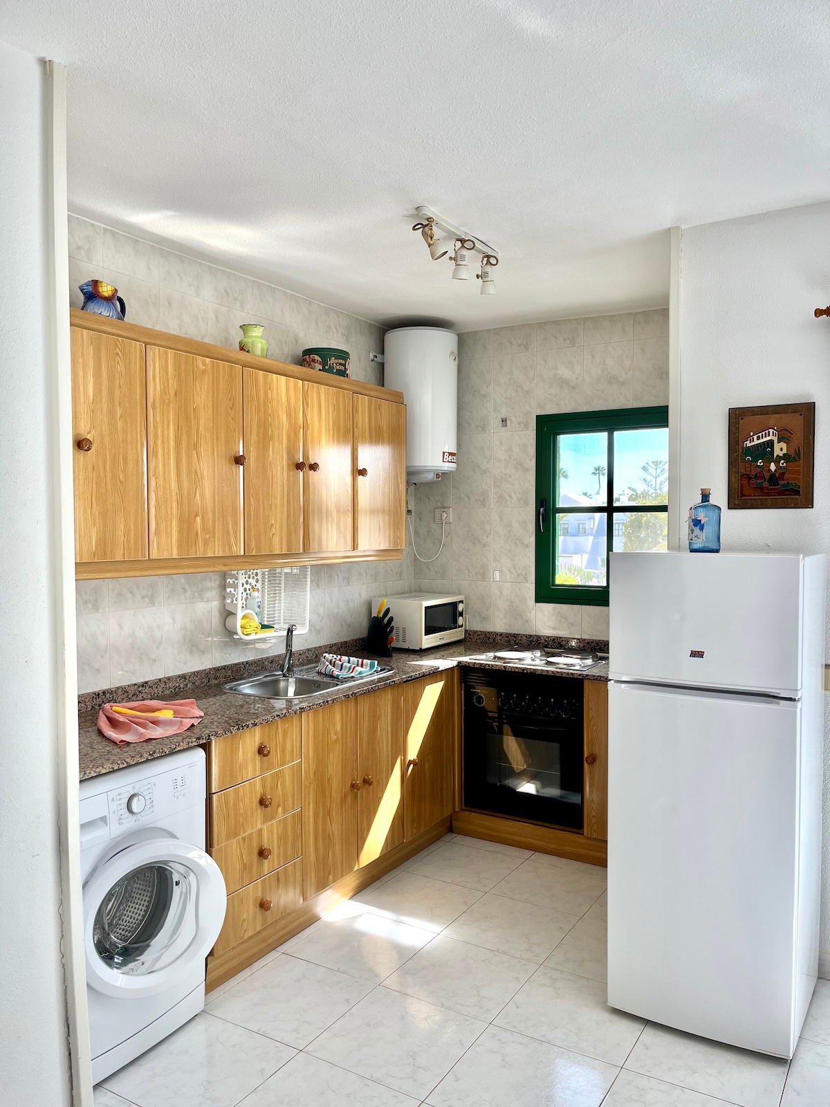 Nuevo apartamento en Puerto del Carmen, ubicado en un complejo muy tranquilo con piscina comunitaria con vistas al mar. Lo mejor de este apartamento es su terraza, dispone de cama redonda para tomar el sol, parrilla exterior para cocinar y una gran mesa para comer o trabajar con vistas al mar. En el interior dispone de salón con smart TV internacional, sofá muy confortable y una pequeña mesa de desayunos. La cocina está totalmente equipada: horno, microondas, frigorífico, sartenes y menaje.