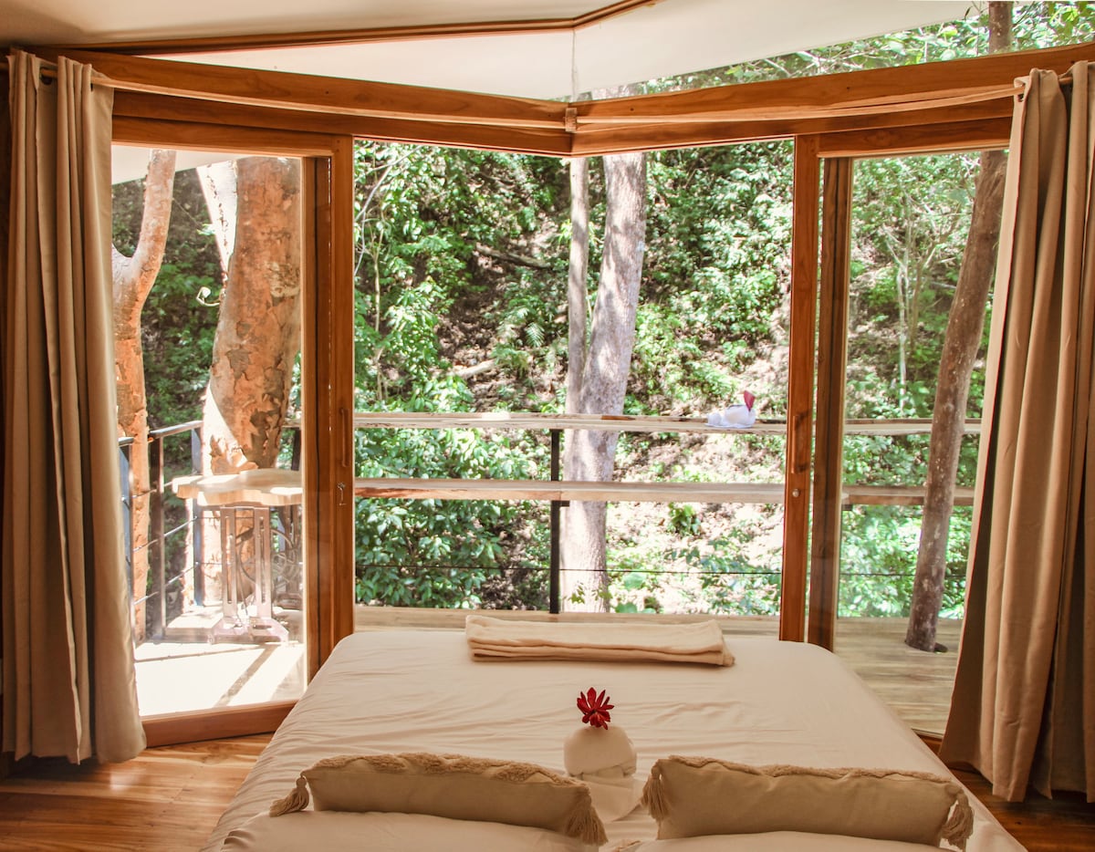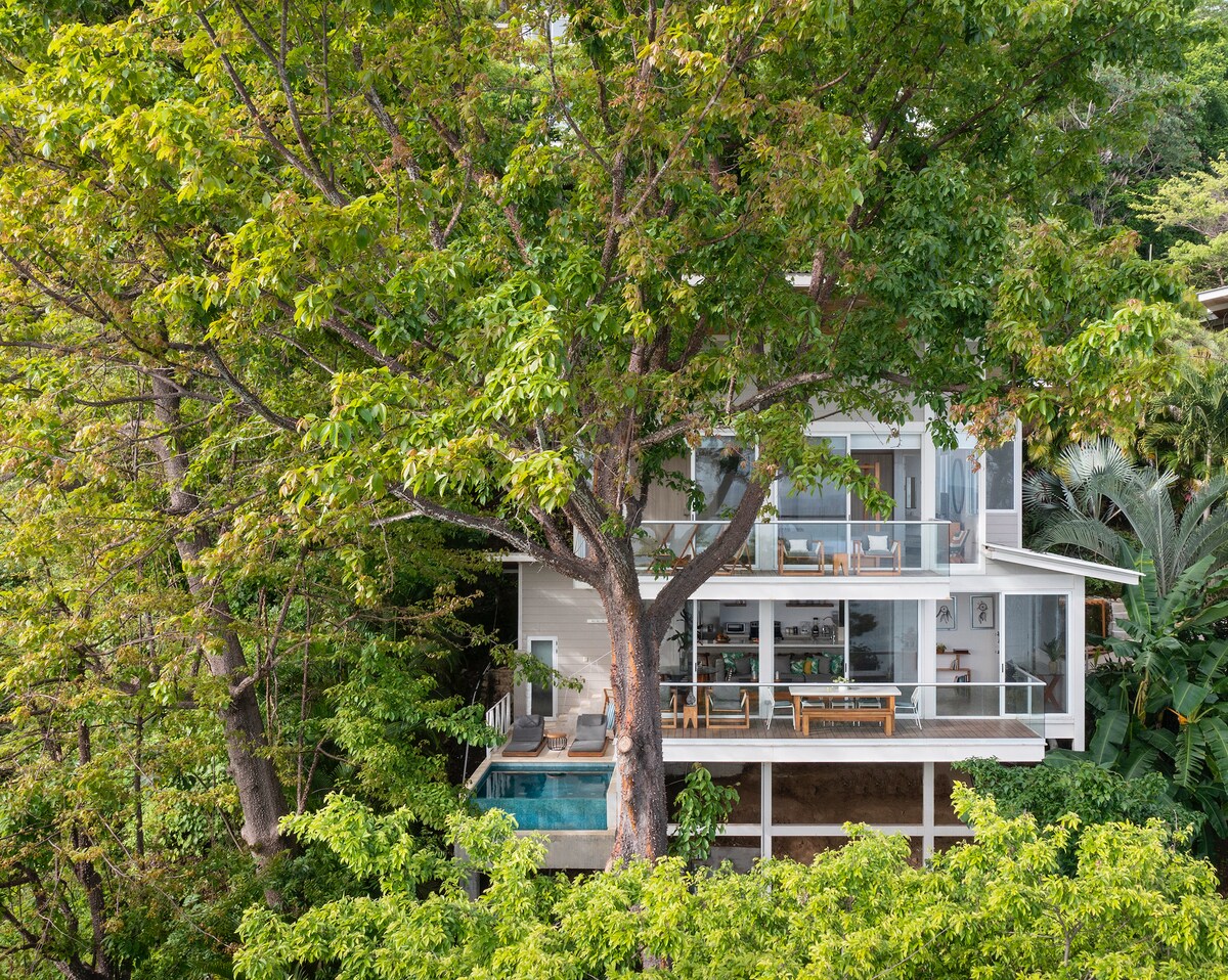Jungle designer house surrounded by nature and wildlife. Located in a quiet residential area of Playa Hermosa, just a 2-minute drive from the beach and a 5-minute drive from Santa Teresa. Surrounded by lush greenery, the house is immersed in the jungle, filled with natural light and views of nature from every space. Built gently between two pochote trees, it was designed with minimal environmental impact, creating the feeling of living in a treehouse while still enjoying all modern comforts.