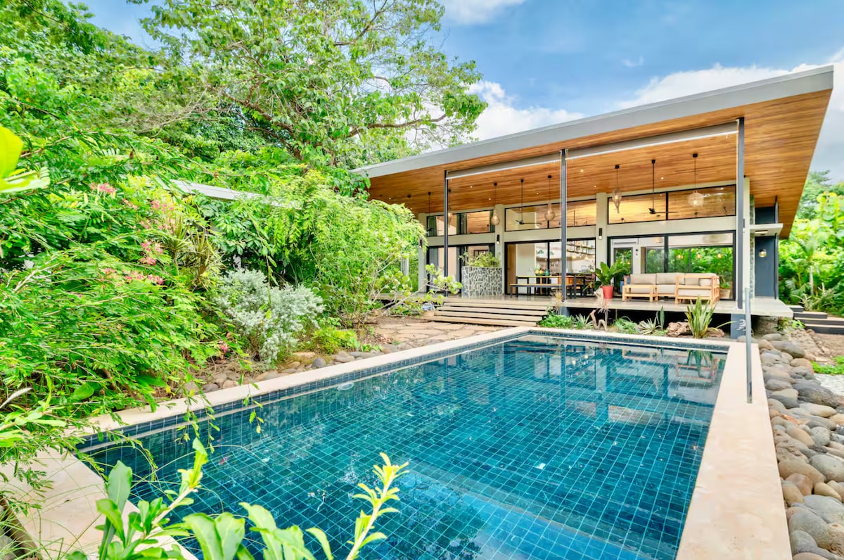 ⭐ “If you prioritize good sleep and clean and modern space, this is the place.” Do you like privacy? The solid concrete walls mean peace, quiet and total privacy. 2,067ft² / 192m² house walkable to dining and amenities. Fenix East ☞ AC in every room ☞ Private pool with sun loungers ☞ 3 min walk to beach ☞ Outdoor patio garden ☞ Fully equipped kitchen ☞ Free off-street parking ☞ Safe + quiet neighborhood ☞ Washer + dryer ☞ 40-min drive from Liberia Airport (LIR)
