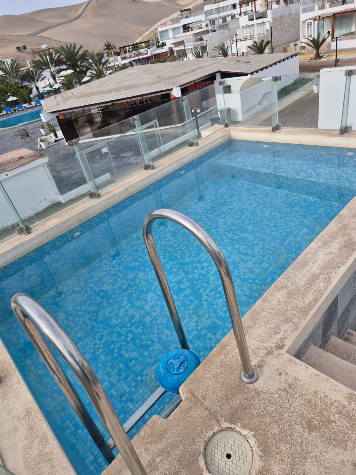 Enjoy a quiet, family-friendly oceanfront stay. Our 180 m² apartment for 10 people offers panoramic ocean views from all rooms, a terrace with armchairs, a swimming pool and a grill. Ideal for relaxing with family, friends and your pet =). For the beach: Includes beach awning, umbrella, chairs and paddles. Km 124.6 Playa Los Delfines, between Playa Honda and Lobos; 25 min from Boulevard de Asia and 10 min from Cerro Azul.