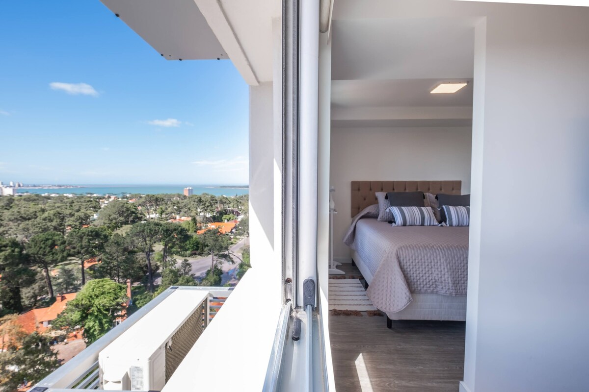 Enjoy with your family all year round. Modern apartment in Punta del Este, with space for 4 people, 9 blocks from Playa Mansa, building with amenities. Located on the 14th floor, northeast-facing, lots of natural light, every day you'll have the opportunity to see a different sunset. Tranquility, comfort, and wonderful ocean and mountain views. The building is located above Atlántico Shopping, where you can enjoy the food court, games, shops, and movie theaters.
