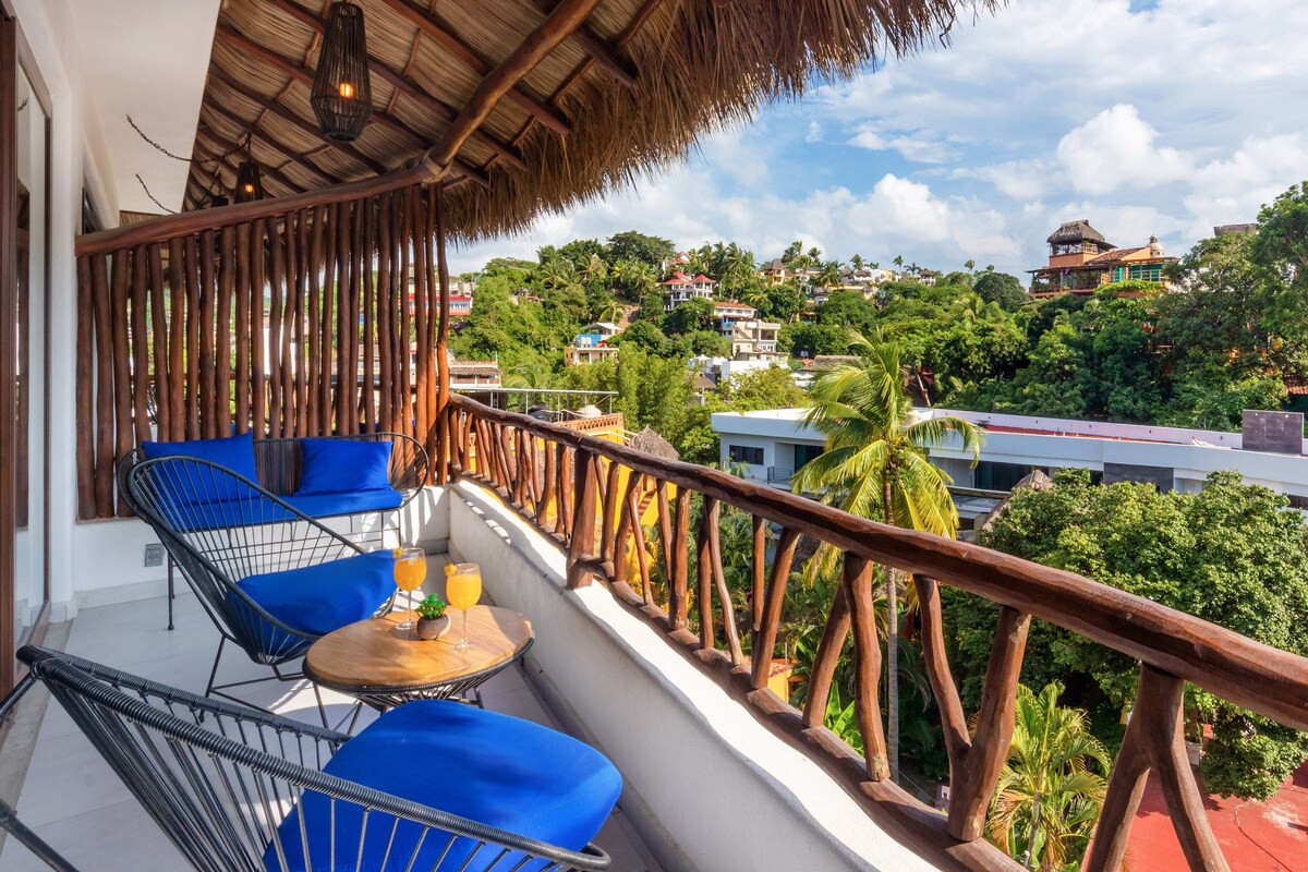NEWLY BUILT 1br/1ba. Take in the beautiful views of the town and the ocean while soaking in the rooftop pool. Enjoy your morning coffee while people-watching from your private balcony. Sample the delicious food Sayulita's best restaurants have to offer just steps away from the front door. Treat yourself to a haircut or mani/pedi from Salon Sayulita just downstairs. Experience Sayulita's bustling night life or close the thick balcony doors and shut out the noise for a good night's rest.