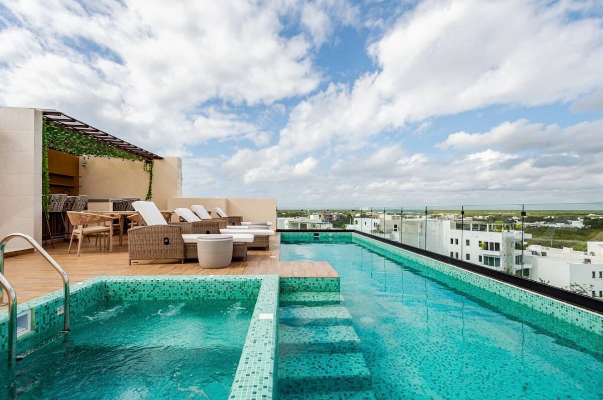 You'll have the best views in town! Enjoy your private rooftop pool oasis and panoramic views of Playa del Carmen and Caribbean Sea. This penthouse suite is a short walk to beaches, restaurants and shopping. Located right on the famous Quinta Avenida our hideaway, at StayCielo, is close enough to walk to nightlife but far enough from the noise that you can enjoy a peaceful evening at home. too. A 5 min walk to Martina & Encanto Beach Clubs as well as great dining options. Message me to chat!