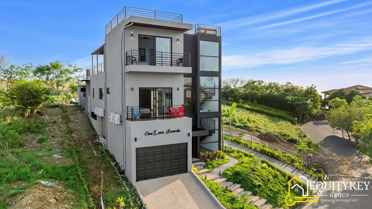 Escape to Casa Shantí, where modern luxury meets total tranquility. This three-bedroom architectural gem in exclusive Coco Bay Estates features a private infinity pool with bay views, rooftop terrace, gourmet chef's kitchen, and three levels of sophisticated living. Enjoy 24/7 gated security, stunning mountain and ocean vistas, and complete privacy; all just 25 minutes from Liberia Airport and minutes from Playa del Coco. Your private hilltop sanctuary awaits.