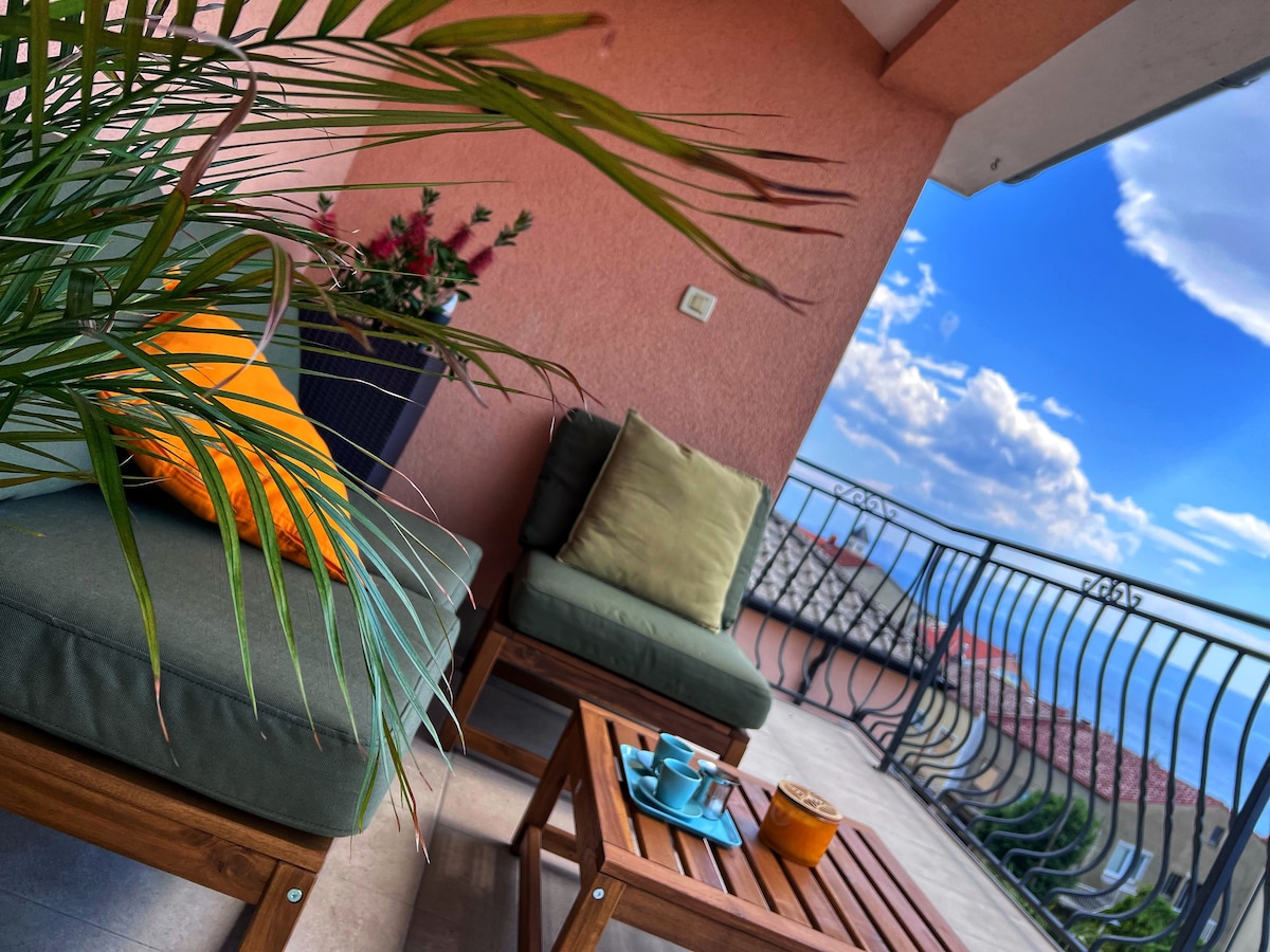 Apartment with big terace, seaview, AC, Wifi
