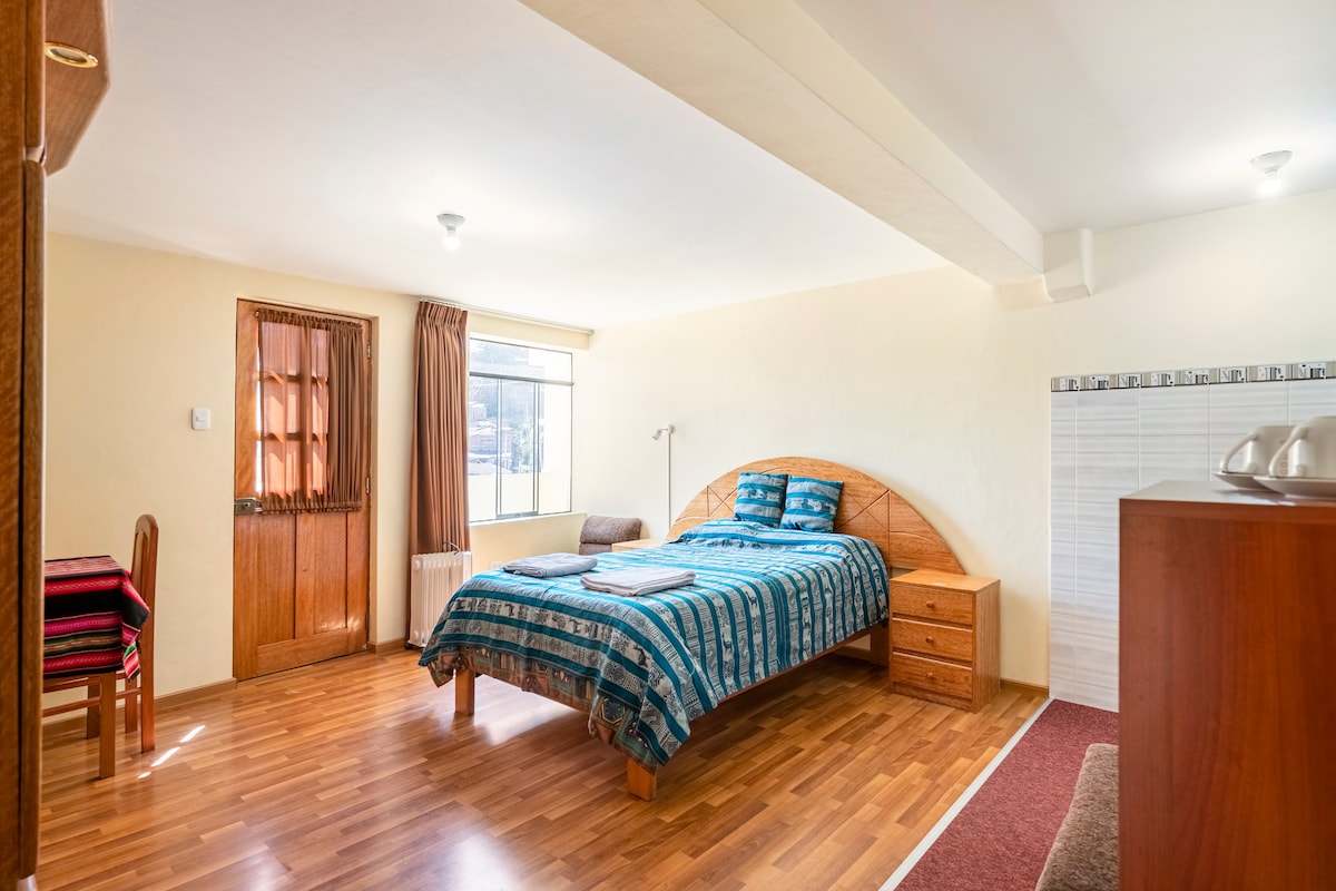 Ausangate by Tiyana Cusco is a cozy apartment with a breathtaking view of Cusco! We're located on the fourth floor of a building just one block from the San Blas Market. The apartment has three views: exterior view, interior courtyard, and terrace (shared). Notable amenities include: - 1 electric heater (convector) - water purification filter - extra-warm duvet - premium mattress - cotton sheets and towels - gas shower