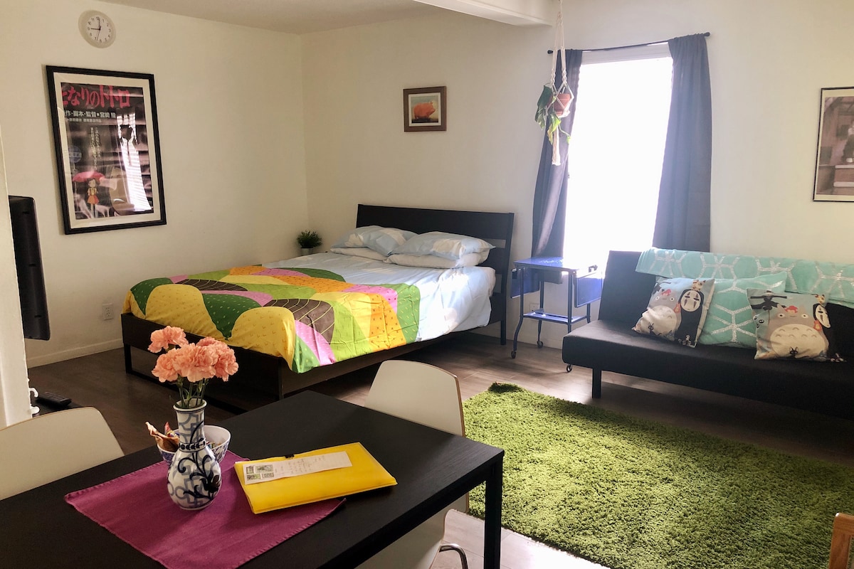 Central 400sqft peaceful art-filled private studio w/ Queen bed + private entrance in quaint neighborhood. Walk to North Loop eateries and coffee shops (Epoch Coffee, Double Trouble, Tigress Bar, Homeslice Pizza). All new appliances, and beautiful spa like bathroom with walk-in shower. Full kitchen setup w/ large fridge. Safe street parking. Smoke free, no pets. Quiet hours from 10pm-8am (unit is attached to main house and hosts live on-site).