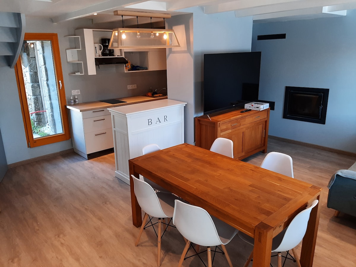 Fully renovated country cottage. Functional and easy to live in, its location is ideal between Dinard, Dinan and Saint Malo. 15 minutes from the most beautiful beaches of the Côte d'Emeraude. In our dynamic region, you can enjoy the seaside or walks along the Rance. Mont St Michel and Cap Fréhel are 45 minutes away. The house is not semi-detached. The enclosed garden. Children will be able to see our animals (chickens, sheep, peacocks, goat). Ideal for remote work. Good WiFi network